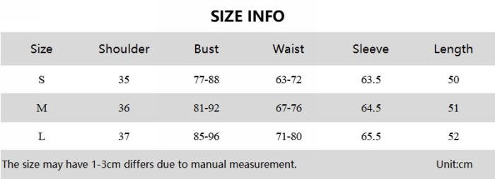 | Size | Bust | Waist | Hips |