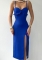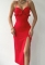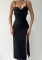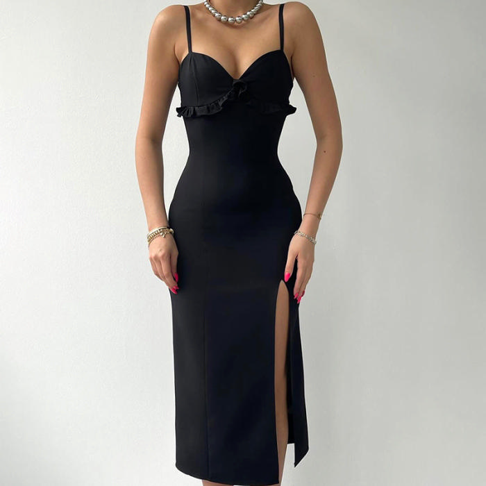 (Black)2024 Styles Women Fashion Sexy Solid Color Ruffle Halter Split Pencil Bodycon Maxi DressSKU: #CF76172-2