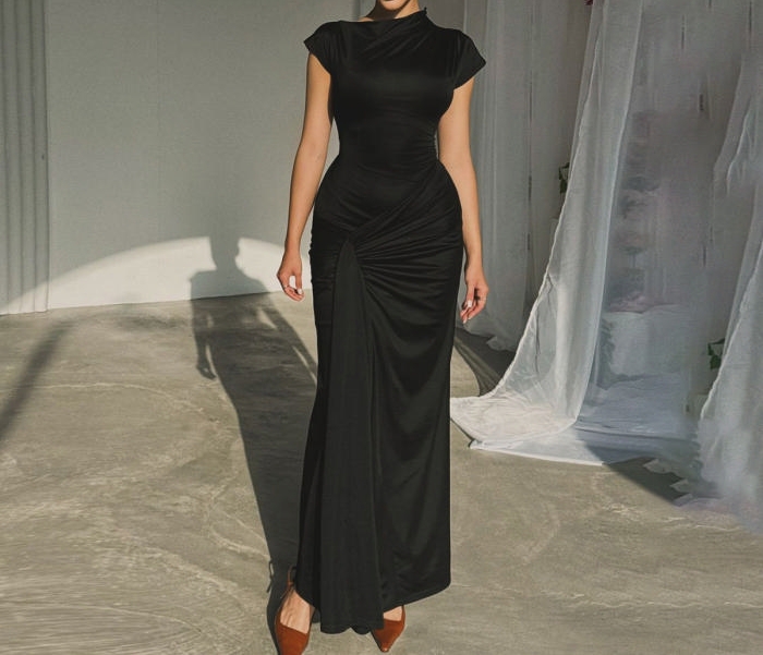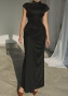 (Black)2024 Styles Women Fitted Pleated Tied Waist Short Sleeve DressSKU: #CF88294-2