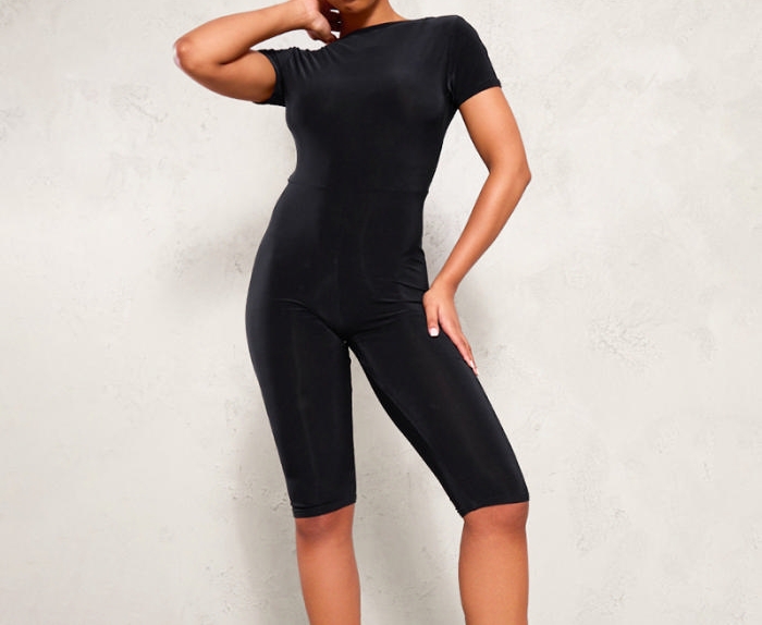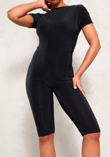 (Black)2024 Styles Women Round-Neck Short-Sleeved Leopard Print High-Waisted Stylish Hot Pants PlaysuitSKU: #CF92068-2