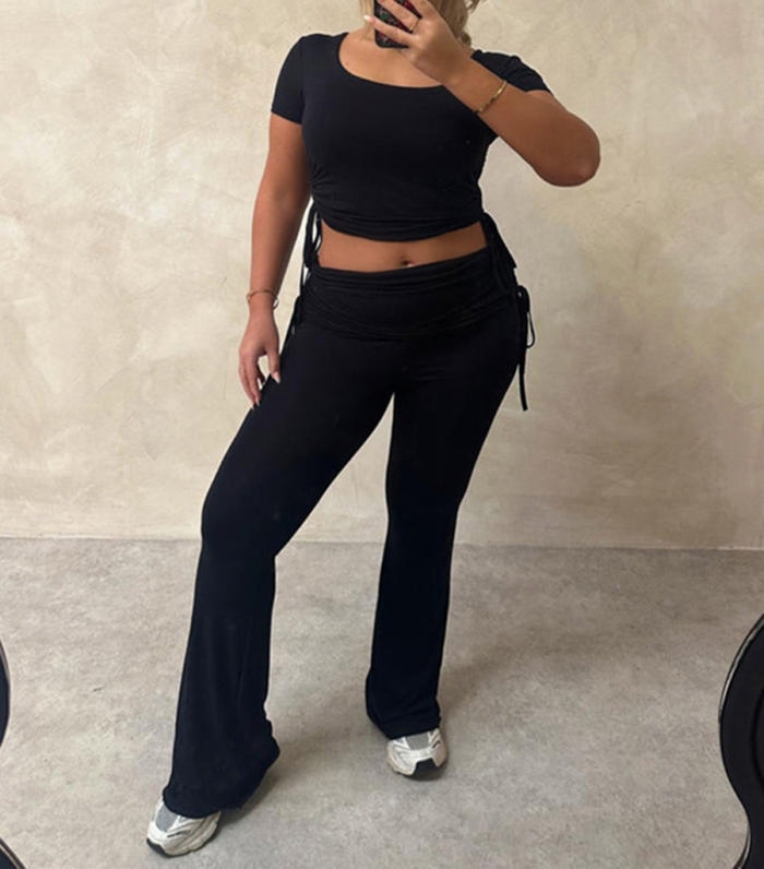 (Black)2024 Styles Women Sexy&Fashion Sprint/Summer TikTok&Instagram Ruffle Two Piece SuitSKU: #CF69037-2