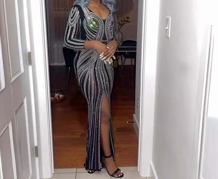 (Black)2024 Styles Women Sexy Sequin-Embellished High-Slit Backless Bodycon Maxi DressSKU: #XF27498-1