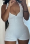 (Black)2024 Styles Women Solid Color PU Leather Flutter Sleeve Round Neck Single-Breasted Buttoned Backless Jumpsuit with ShortsSKU: #CF42057-2