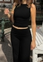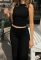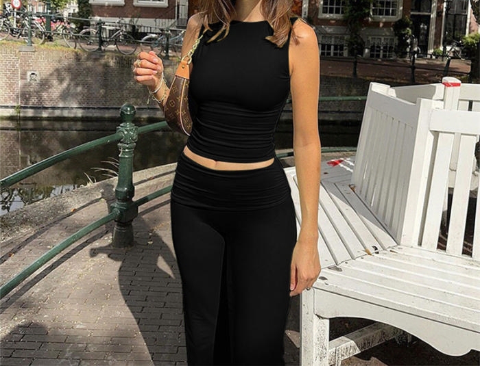 (Black)2024 Styles Women Summer Backless Tight Sleeveless Tank Top with High-Waist Solid Color Flare Pants SetSKU: #CF77815-2