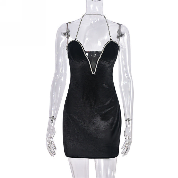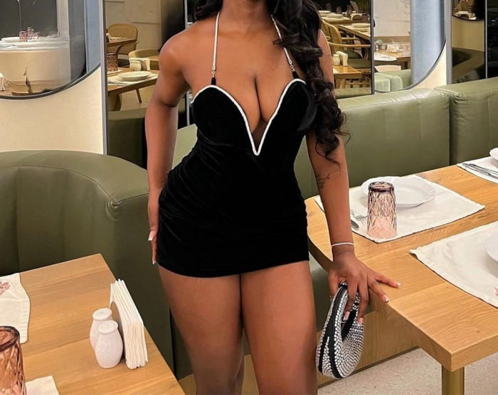 (Black)2024 Styles Women Summer Color-Blocked Open Back Deep V Euro Halter DressSKU: #CF59878-3
