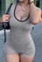 (Black)2024 Styles Women Summer Fashion Streetwear Zipper Bodycon Round Neck Short Sleeve Solid Color JumpsuitSKU: #CF88203-2