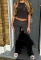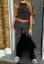 (Black)2024 Styles Women Summer Round Neck Sleeveless Crop Top and Foldover Waist Pants Two Piece SetSKU: #CF47931-3