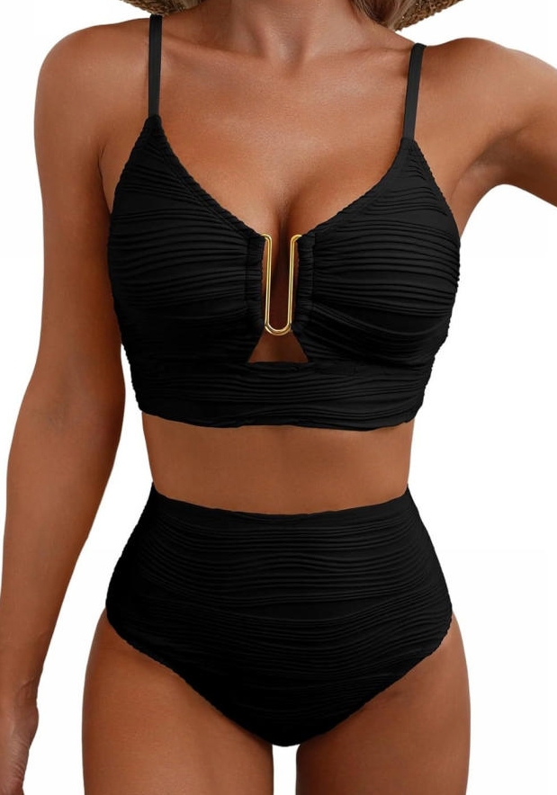 (Black)2025 Styles Women Color-Blocked Ribbed Bikini with Slimming DesignSKU: #CF56155-1