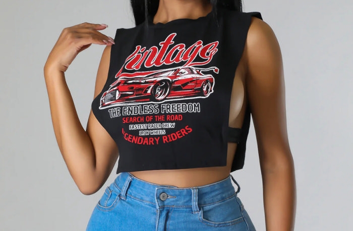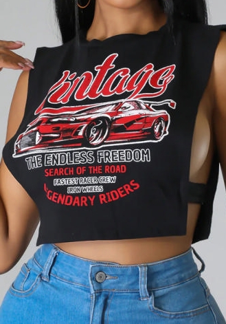 (Black Car)2023 Styles Women Sexy&Fashion Spring&Summer TikTok&Instagram Styles Print Sleeveless TeeSKU: #CF59554-3