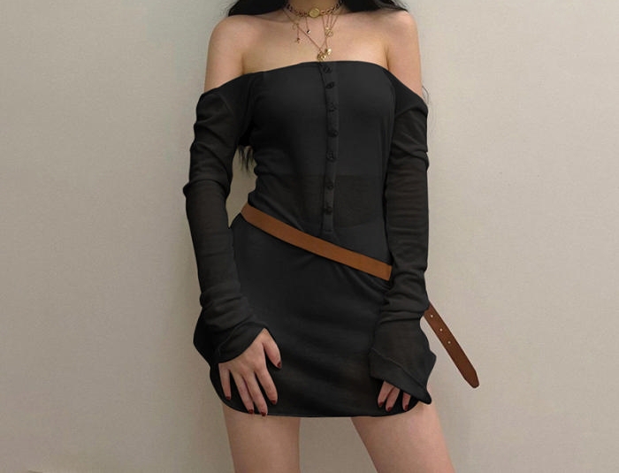 (Black,Not Waist Tie)2024 Styles Women Solid Color Button-Front Peplum Long Sleeve DressSKU: #CF88291-2