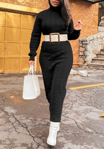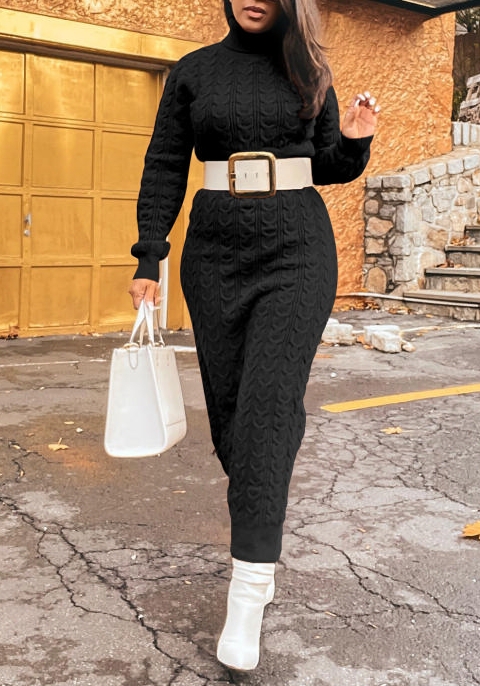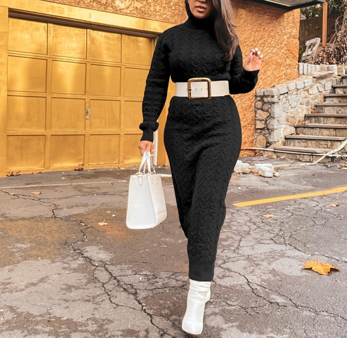 (Black)(Not Waite Tie)2022 Styles Women Sexy Spring&Winter TikTok&Instagram Styles Sweater Maxi DressSKU: #XF85051-1