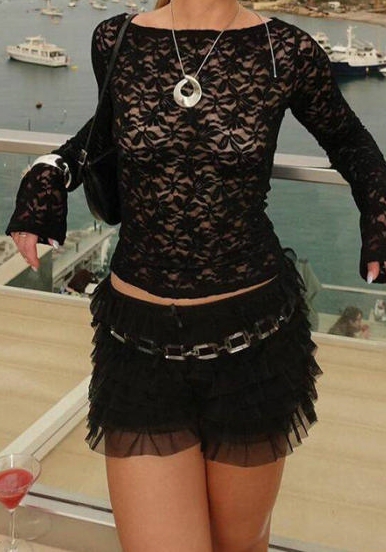(Black,Only Bottom)2024 Styles Women Lace Trimmed Low-Waist Liner ShortsSKU: #CF883006-2