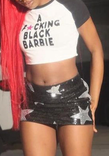 (Black,Only Tops)2024 Styles Women Letter Print Retro Cropped Raglan-Sleeved T-ShirtSKU: #CF92125-2