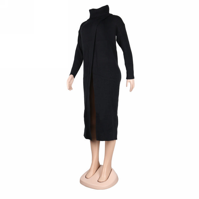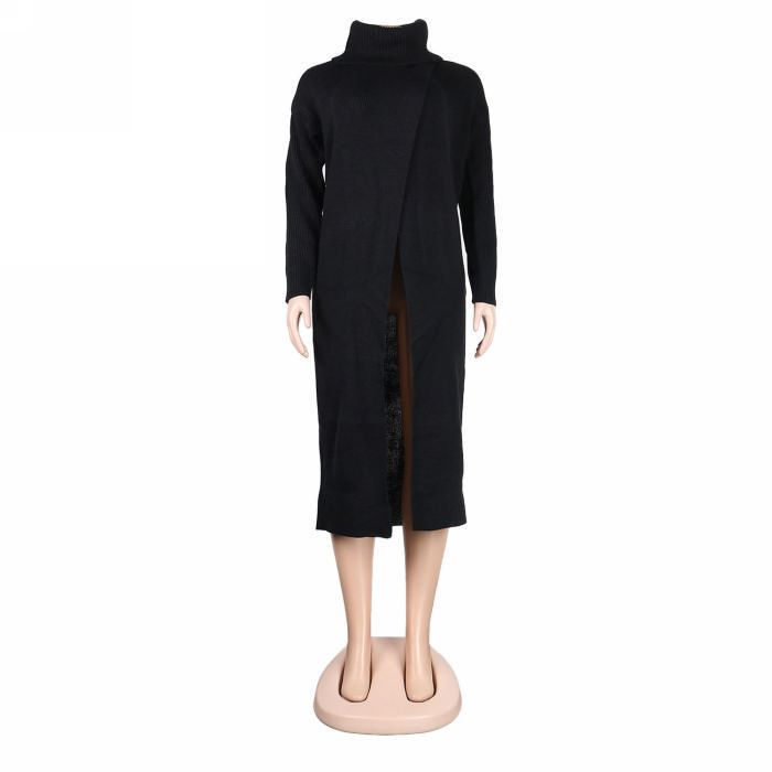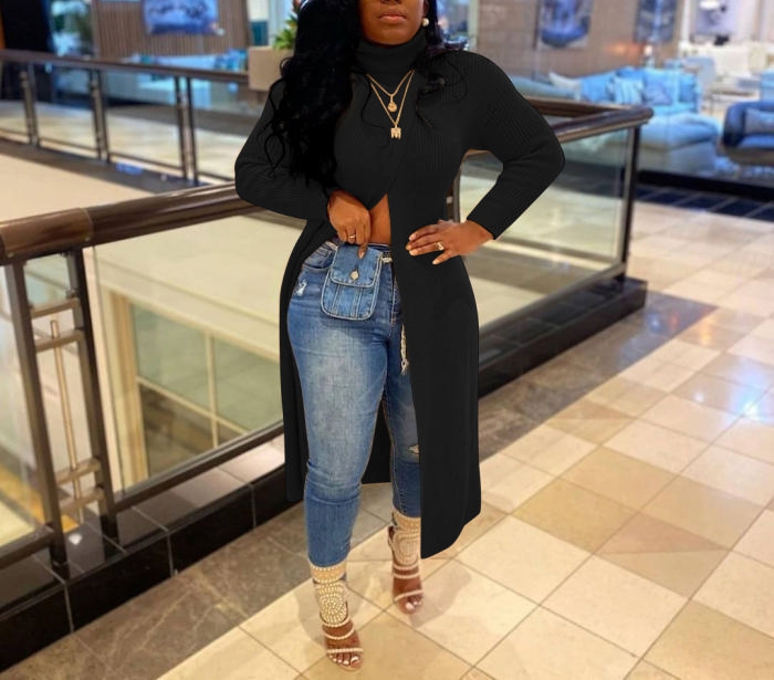 (Black)(Plus Size)2022 Styles Women Fashion Spring&Winter TikTok&Instagram Styles Solid Color High Split Long CoatSKU: #XF27275-1