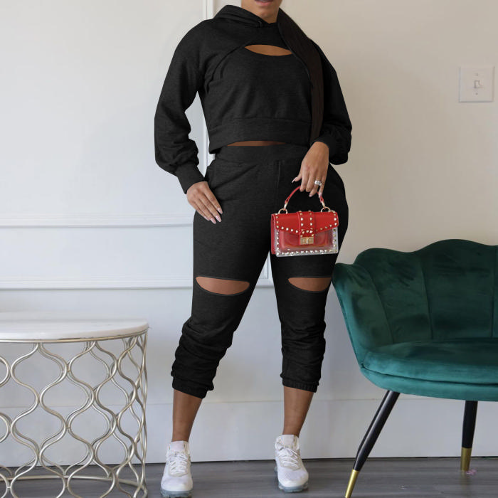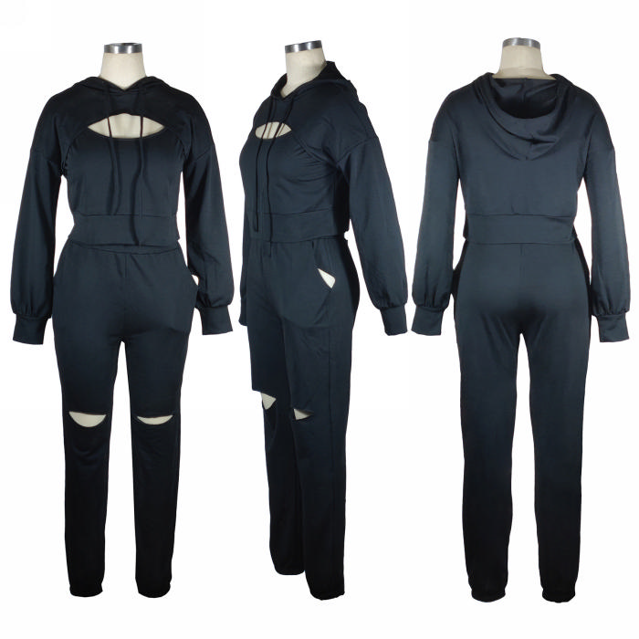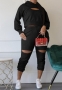 (Black,Real Image)2022 Styles Women Sexy Spring&Winter TikTok&Instagram Styles Cut Out Two Piece SuitSKU: #XF13440-2