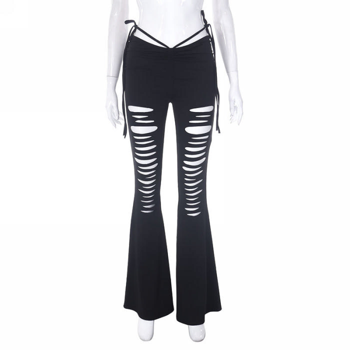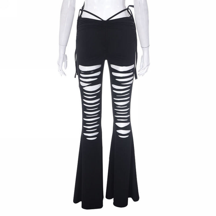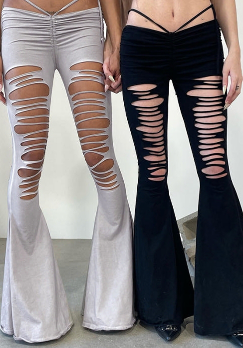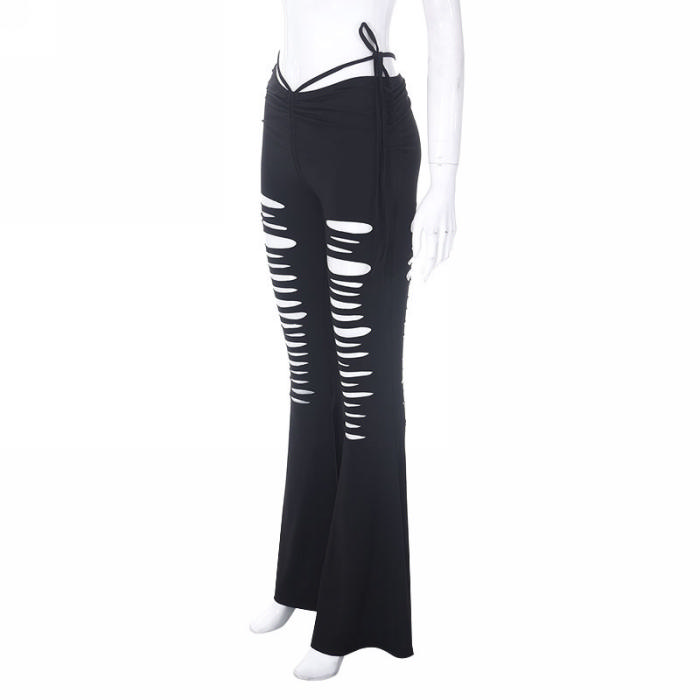 (Black)(Real Image)2023 Styles Women Sexy&Fashion Spring&Summer TikTok&Instagram Styles Ripped Long PantsSKU: #CF68231-3