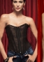 Black Ruffle Vertical Stripes Front Satin OverBust Steel Boned CORSETSKU: #QX11005-1