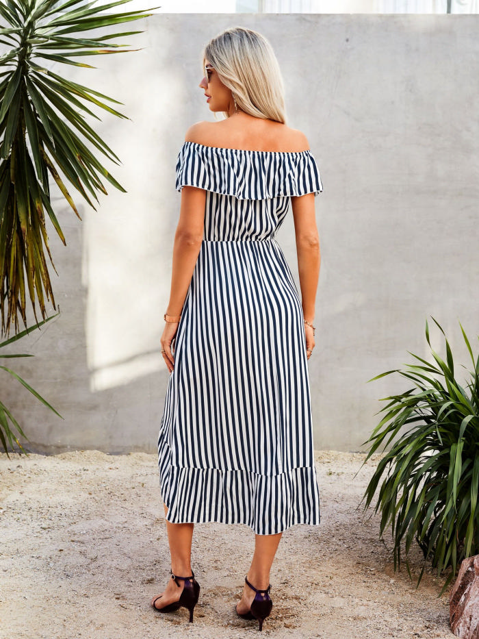 (Blackl)(Real Image)2022 Styles Women Fashion INS Styles Striped Bohemian Irregular Maxi DressSKU: #XF28395-2
