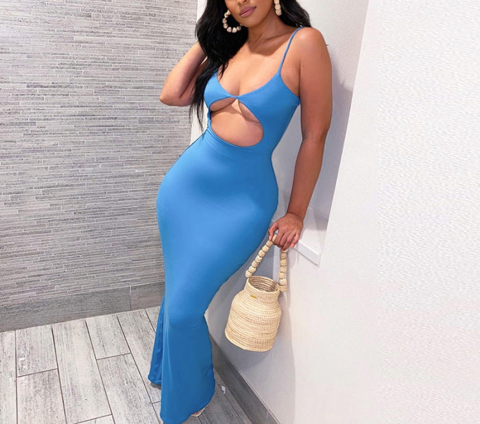 (Blue)2022 Styles Women Fashion Instagram Styles Black Strap Maxi DressSKU: #CF12356-2