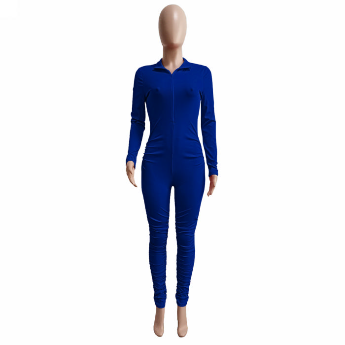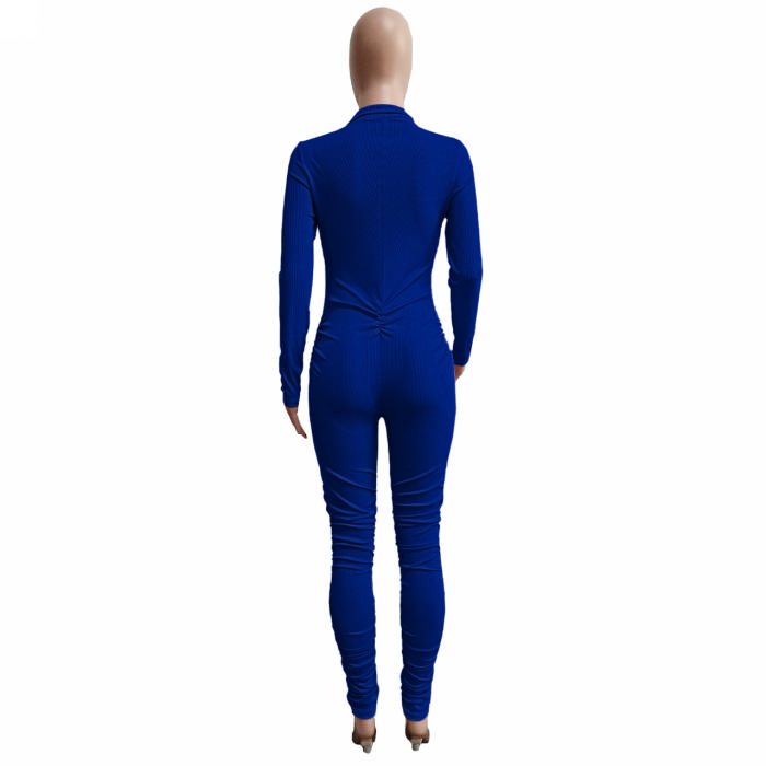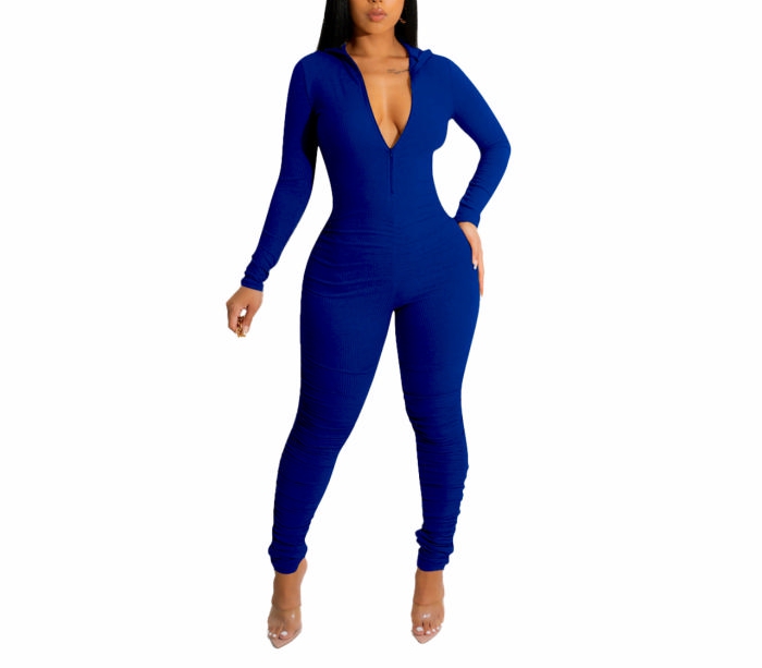 (Blue)2022 Styles Women Fashion Spring&Winter TikTok&Instagram Styles Deep V Neck Solid Color JumpsuitSKU: #XF82081-3