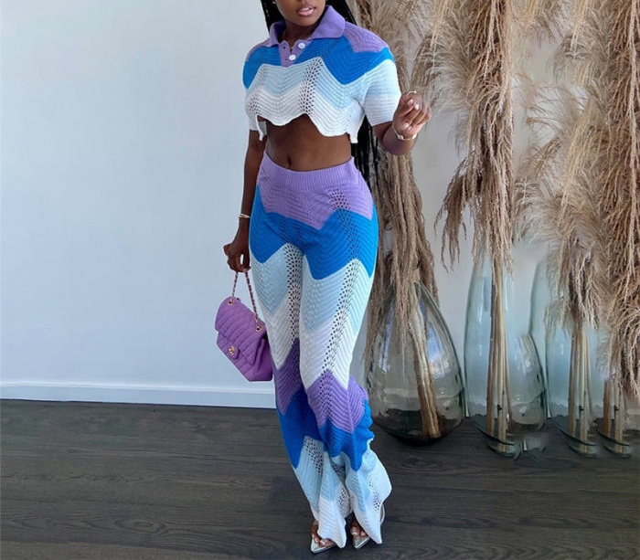 (Blue)2022 Styles Women Fashion Summer TikTok&Instagram Styles Contrast Color Two Piece SuitSKU: #CF48857-1