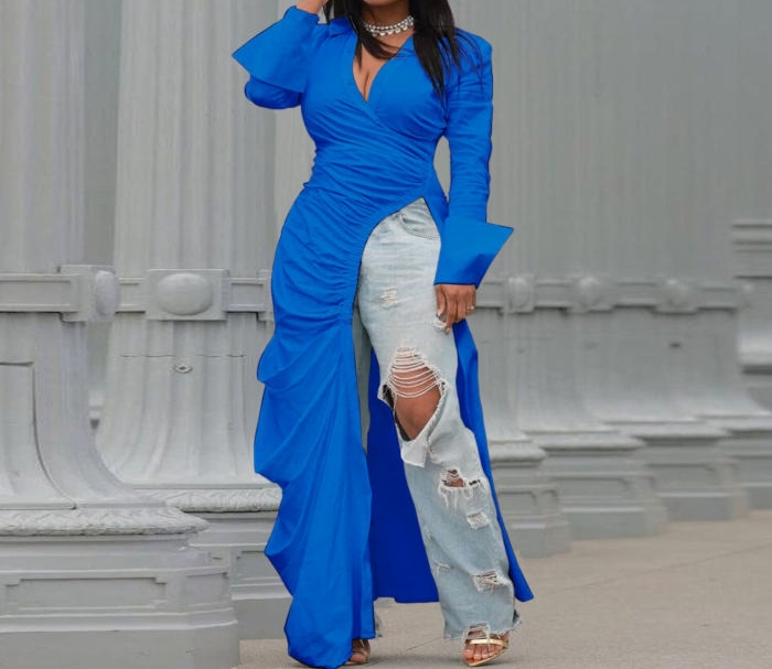 (Blue)2022 Styles Women Sexy Spring&Winter TikTok&Instagram Styles Long Sleeve Irregular Maxi DressSKU: #XF27299-5