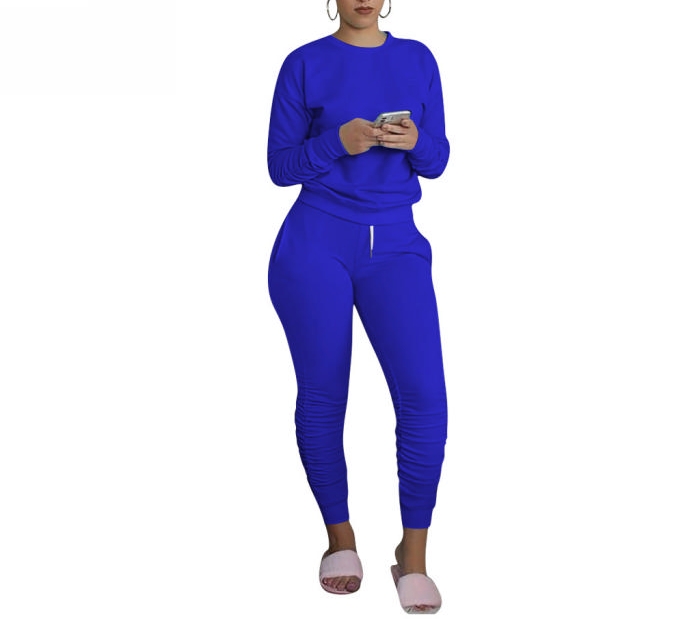 (Blue)2022 Styles Women Sexy Spring&Winter TikTok&Instagram Styles Solid Color Two Piece SuitSKU: #XF13453-5
