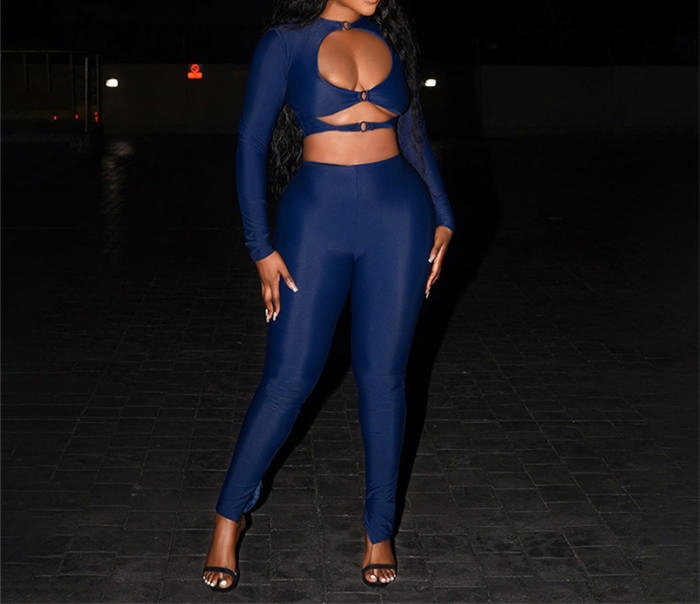 (Blue)2023 Styles Women Sexy&Fashion Autumn/Winter TikTok&Instagram Styles Cut Out Two Piece SuitSKU: #CF77630-1
