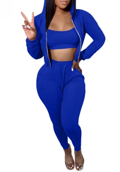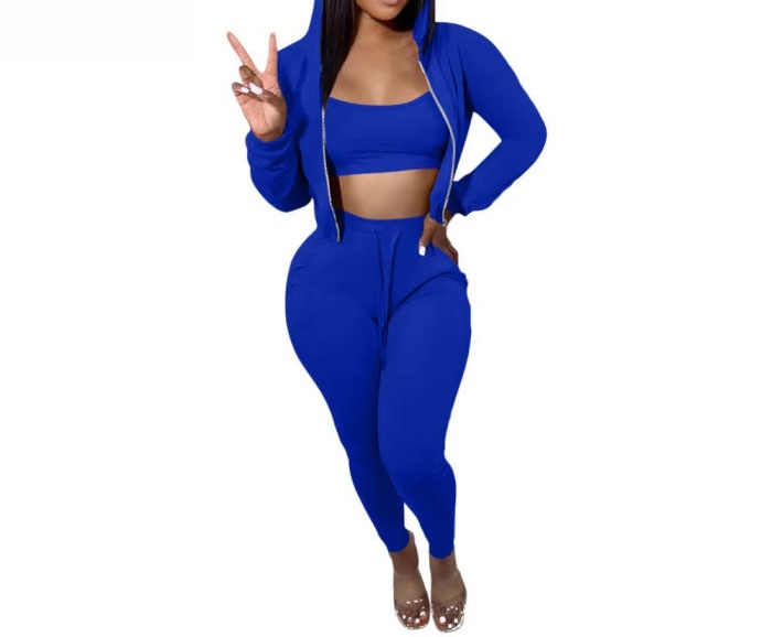 (Blue)2023 Styles Women Sexy&Fashion Autumn/Winter TikTok&Instagram Styles Hoodie Three Piece SuitSKU: #OEM6002-9