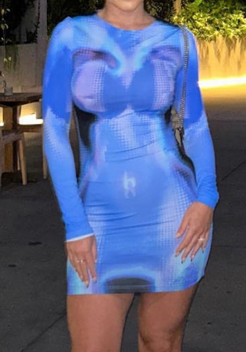 (Blue)2023 Styles Women Sexy&Fashion Autumn/Winter TikTok&Instagram Styles Print Long Sleeve Mini DressSKU: #OU2846-2