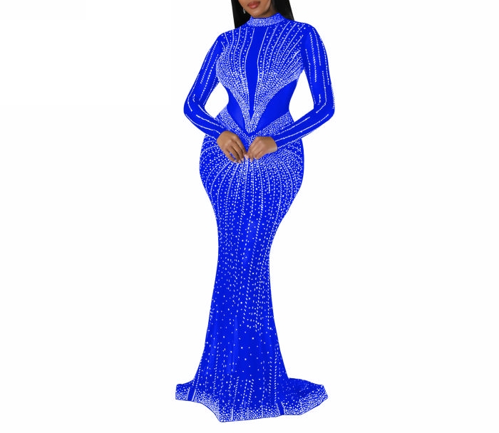 (Blue)2023 Styles Women Sexy&Fashion Autumn/Winter TikTok&Instagram Styles Sequins Long Sleeve Maxi DressSKU: #XF73042-2