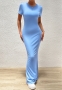 (Blue)2023 Styles Women Sexy&Fashion Autumn/Winter TikTok&Instagram Styles Short Sleeve Maxi DressSKU: #XF45025-5