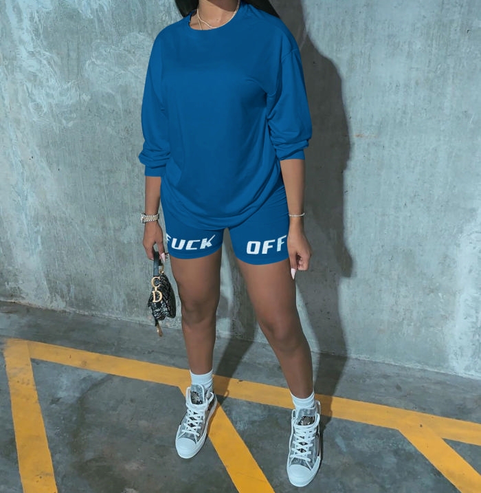 (Blue)2023 Styles Women Sexy&Fashion Spring&Summer TikTok&Instagram Styles Print Short Two Piece SuitSKU: #OU261-8