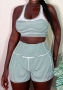 (Blue)2023 Styles Women Sexy&Fashion Spring&Summer TikTok&Instagram Styles Solid Color Bodysuit+Short Pants Short Two Piece SuitSKU: #CF22956-2