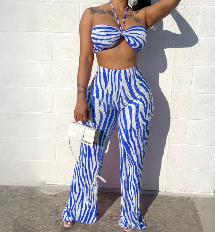 (Blue)2023 Styles Women Sexy&Fashion Spring&Summer TikTok&Instagram Styles Striped Two Piece SuitSKU: #OM484-5