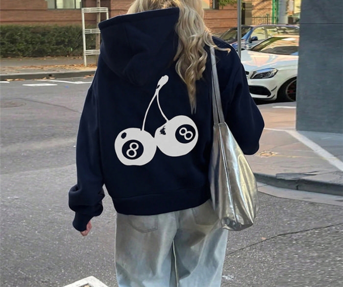 (Blue)2024 Styles Women Autumn/Winter Printed Relaxed Long Sleeve Hooded Sweatshirt with PocketsSKU: #CF77836-2