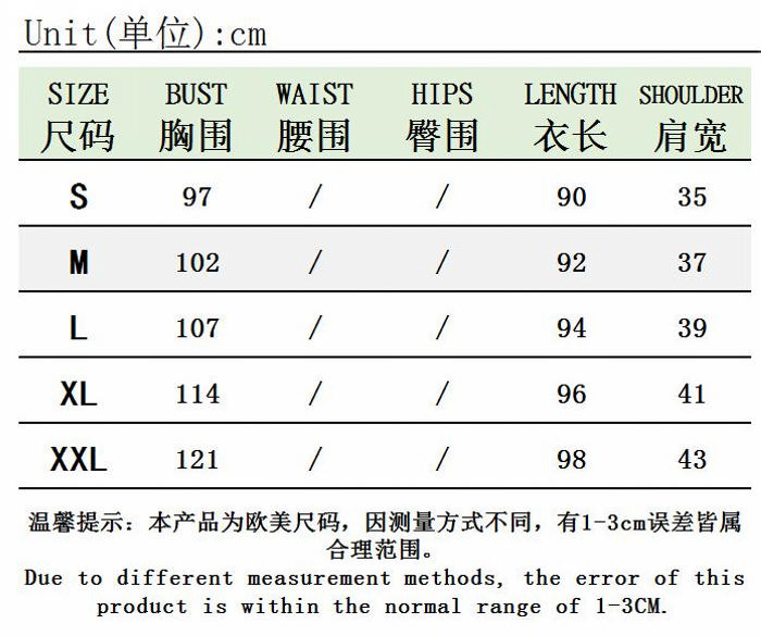| Size | Bust | Waist | Hips |