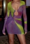 (Blue)2024 Styles Women Fitted Knit Ribbed V-Neck Waist-Cinching Long-Sleeve DressSKU: #XF92914-2