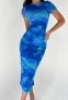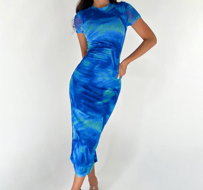 (Blue)2024 Styles Women Multicolor Floral Print Strapless Slimming Short-Sleeved Maxi DressSKU: #CF92108-2