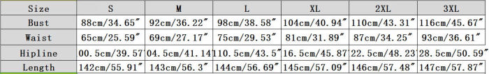 | Size | Bust | Waist | Hips |