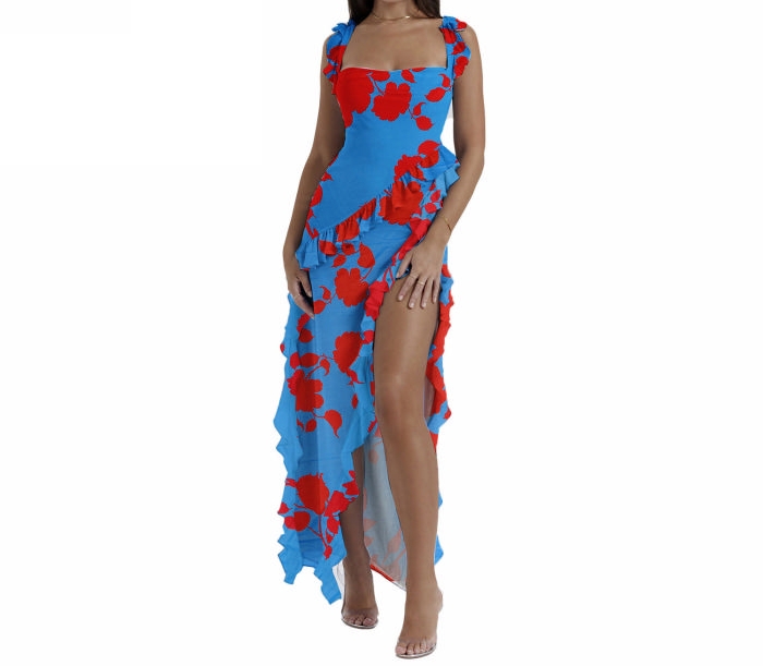 (Blue)2024 Styles Women Sexy Floral Lace-Trimmed Split-Hem Multicolor Maxi DressSKU: #XF27490-3