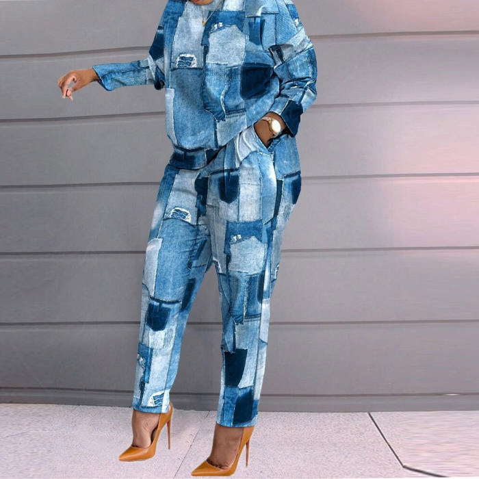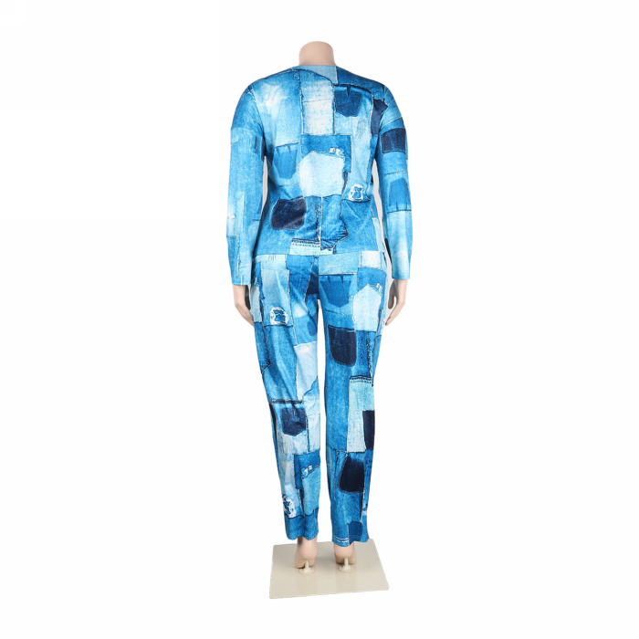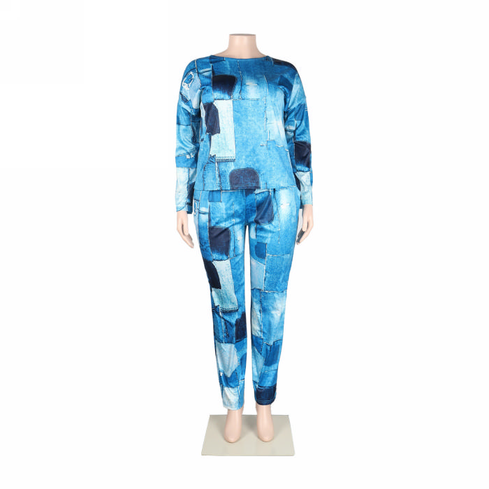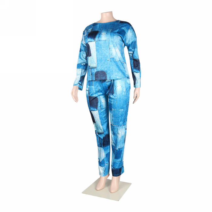 (Blue)(Plus Size)2022 Styles Women Fashion Spring&Winter TikTok&Instagram Styles Lace Two Piece SuitSKU: #XF27251-1