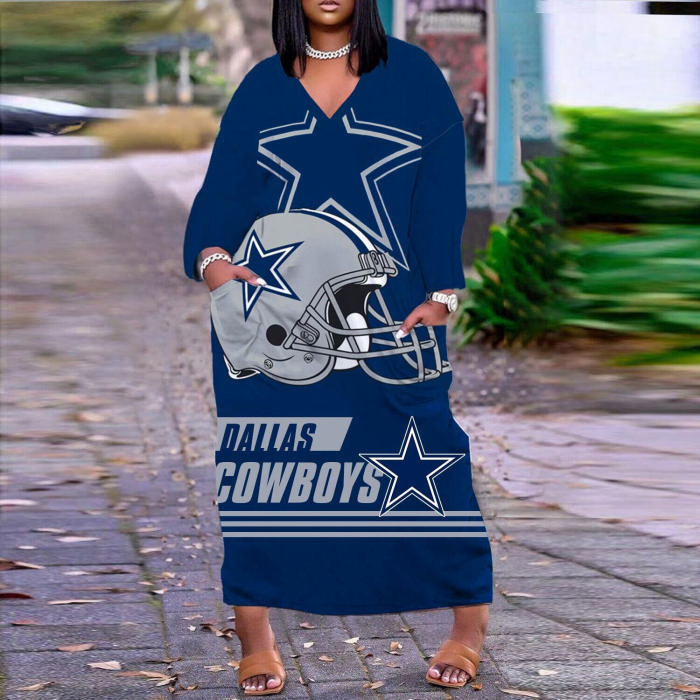(Blue)(Plus Size)2022 Styles Women Fashion Spring&Winter TikTok&Instagram Styles Long Sleeve Loose Maxi DressSKU: #XF27261-1