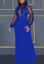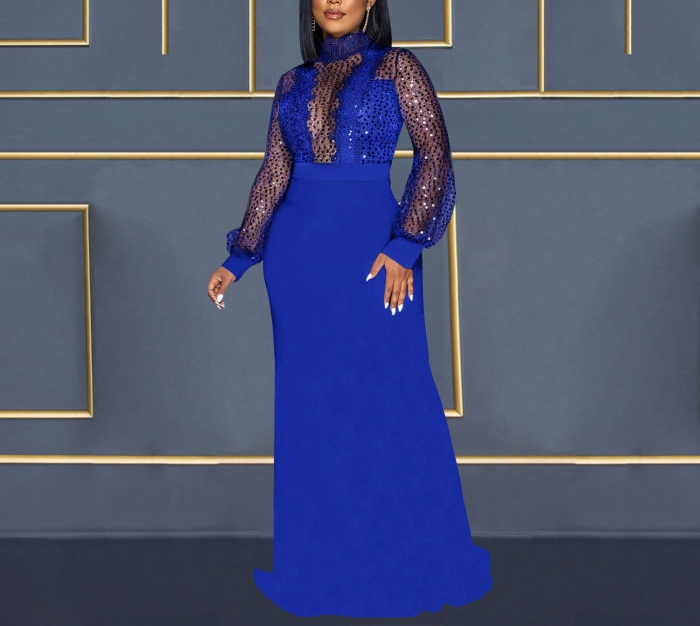 (Blue)(Plus Size)2022 Styles Women Fashion Spring&Winter TikTok&Instagram Styles Long Sleeve Mesh Sequin Maxi DressSKU: #XF27265-5