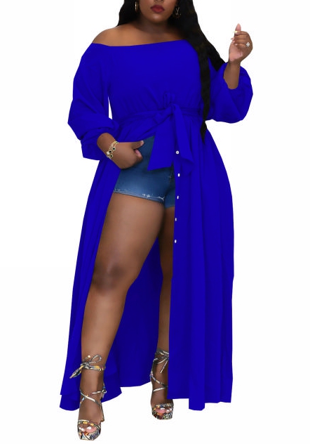 (Blue)(Plus Size)2022 Styles Women Fashion Summer TikTok&Instagram Styles Front Button Waist Tie Maxi DressSKU: #XF13438-3