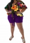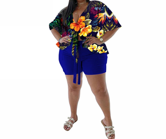 (Blue)(Plus Size)2023 Styles Women Sexy&Fashion Spring&Summer TikTok&Instagram Styles Print Short Two Piece SuitSKU: #CF85005-4