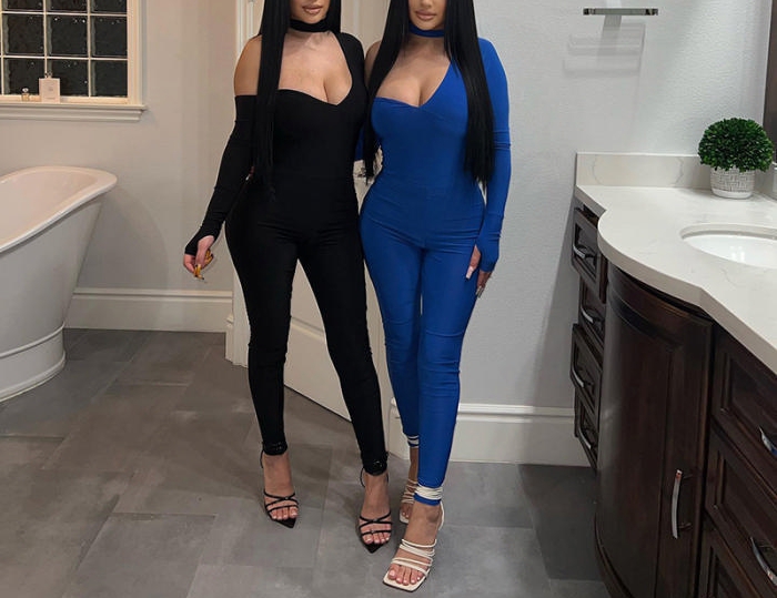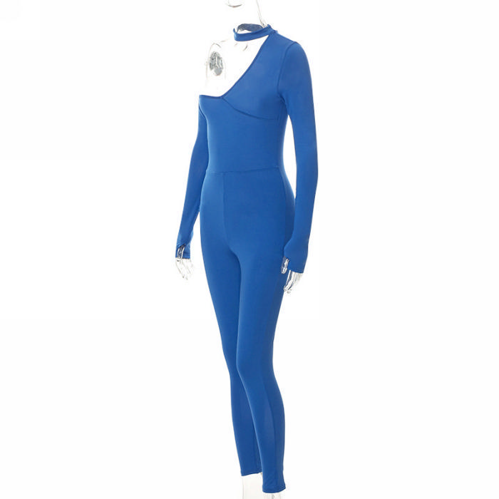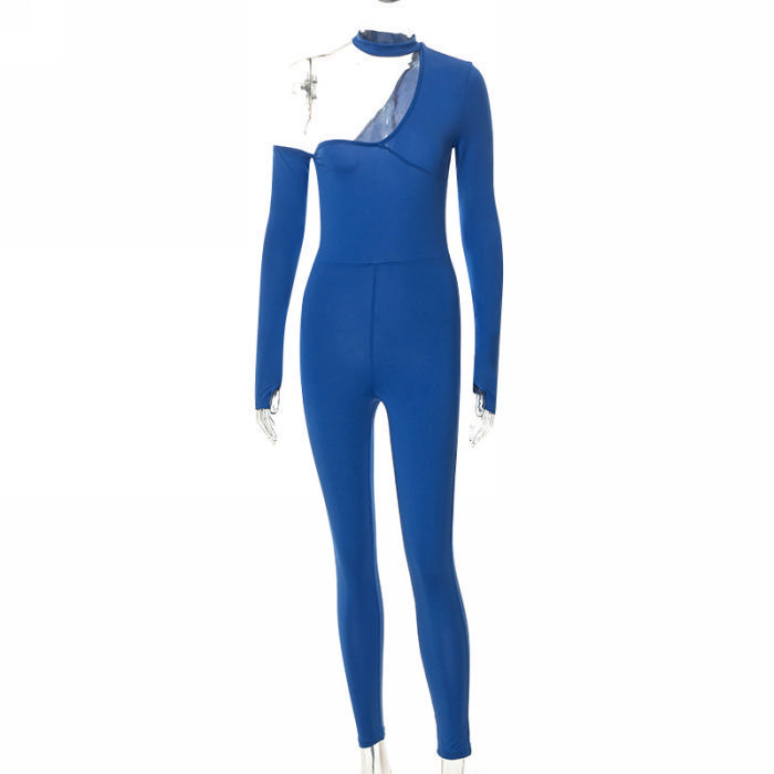 (Blue)(Real Image)2022 Styles Women Fashion Spring&Winter TikTok&Instagram Styles Solid Color Irregular JumpsuitSKU: #CF47362-1