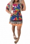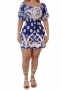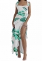 (Blue&White)2024 Styles Women Floral Waist-Cinch Backless Lantern Sleeves Off-Shoulder Two-Way DressSKU: #XF27494-6