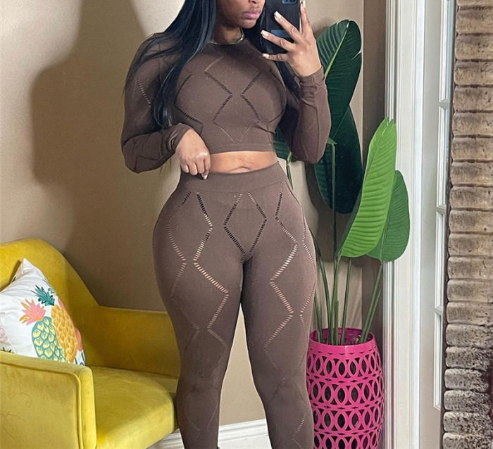 (Brown)2022 Styles Women Fashion Spring&Winter TikTok&Instagram Styles Lace Hollow Two Piece SuitSKU: #CF77125-3