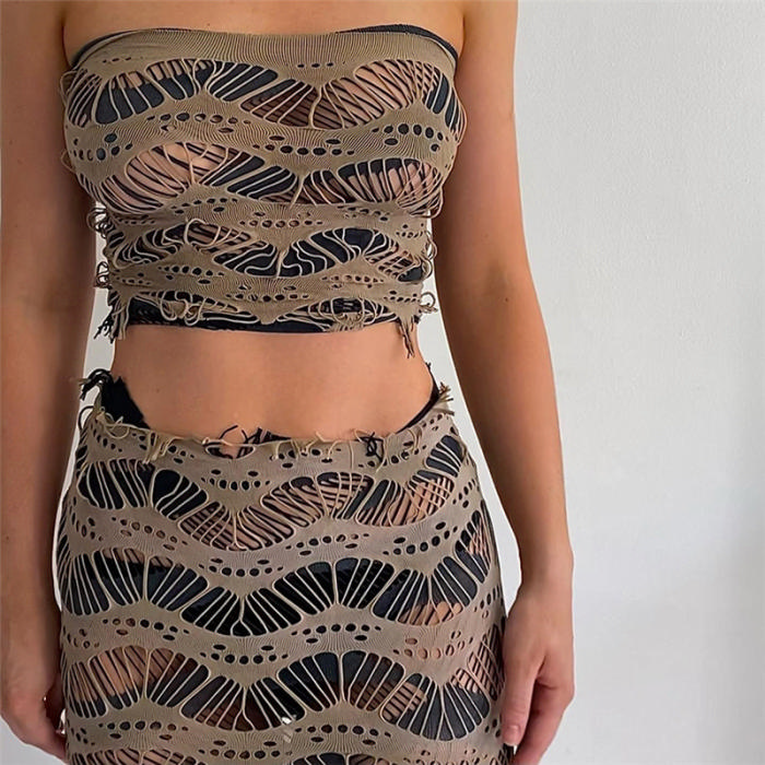 (Brown)2022 Styles Women Fashion Summer TikTok&Instagram Styles Lace Two Piece DressSKU: #CF48780-3